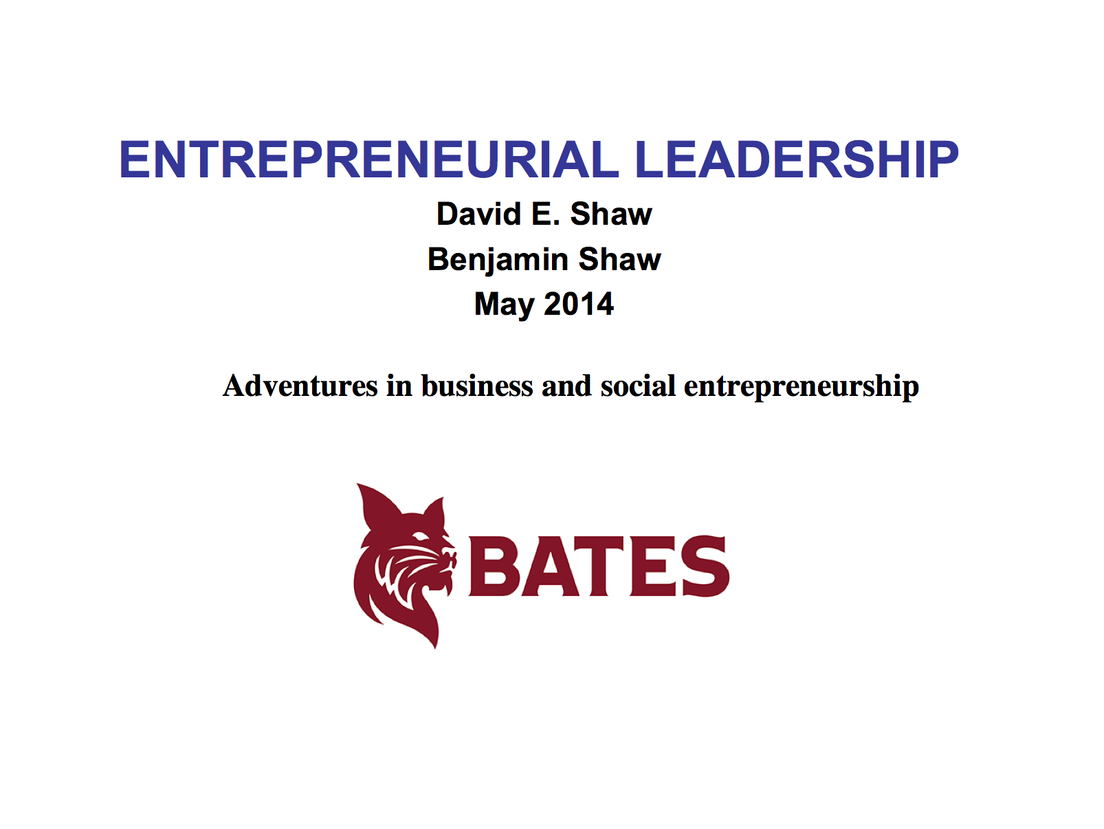 In May of 2014 we met with students and faculty at Bates College for a seminar entitled “Adventures in Business and Social Entrepreneurship”. Using examples from personal experience, we discussed key success factors and the blurring line between business and social ventures.
